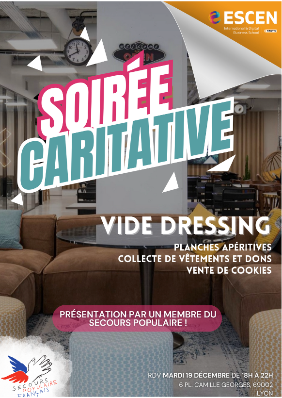 Dans le cadre d’un projet caritatif, nous avons organisé une soirée caritative en partenariat avec le Secours Populaire et notre école. Ce projet, mené par une équipe de 20 personnes, a été conçu dans un délai d’un mois, dans le but de collecter des dons financiers et matériels au profit de cette association engagée dans la lutte contre la précarité.